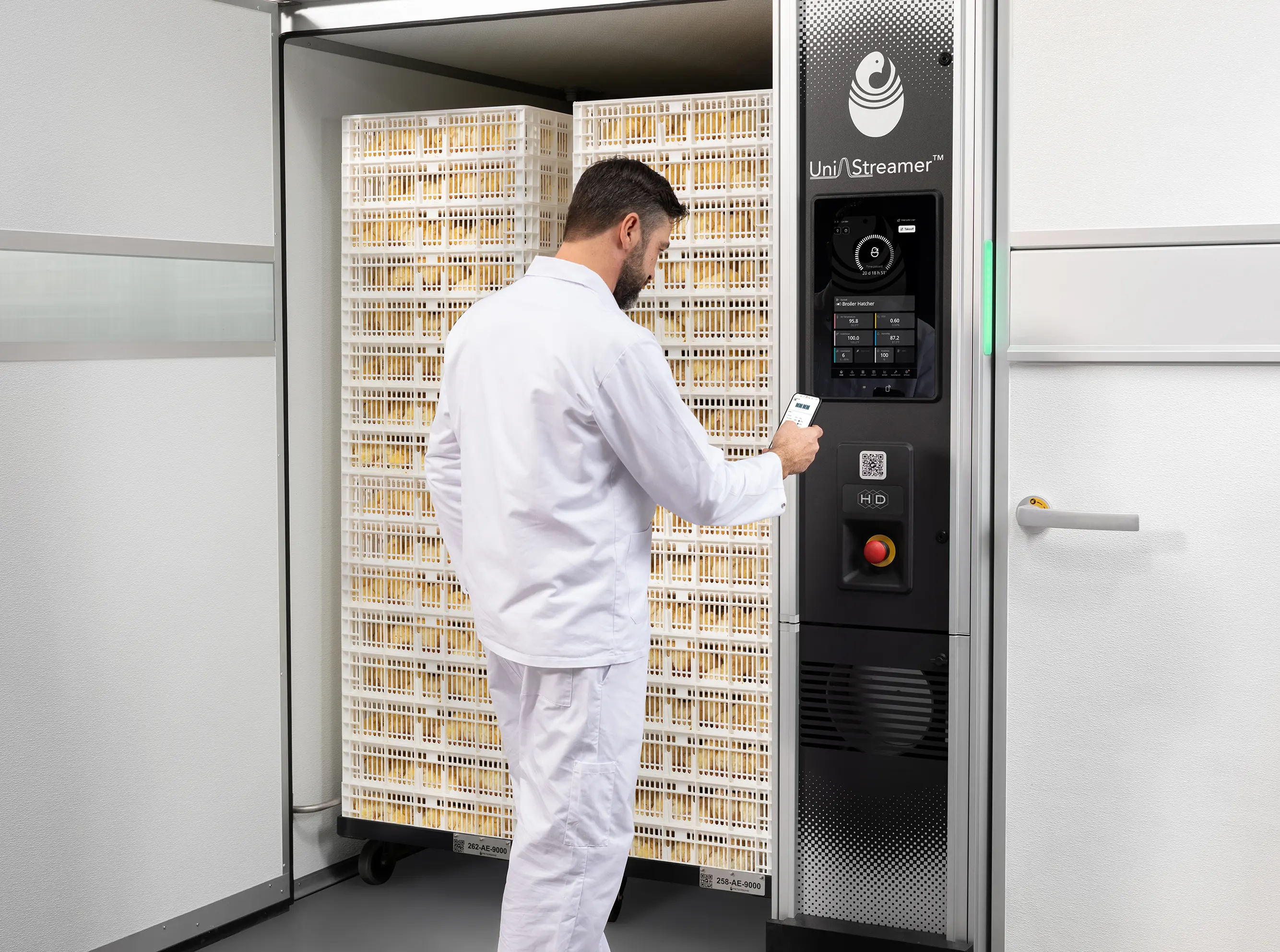 By enhancing and optimizing what was achieved in the setter, UniStreamer™ hatchers maximize chick quality and uniformity. Post-hatch temperature control directly in the basket safeguards chicks until trolley pull-out.